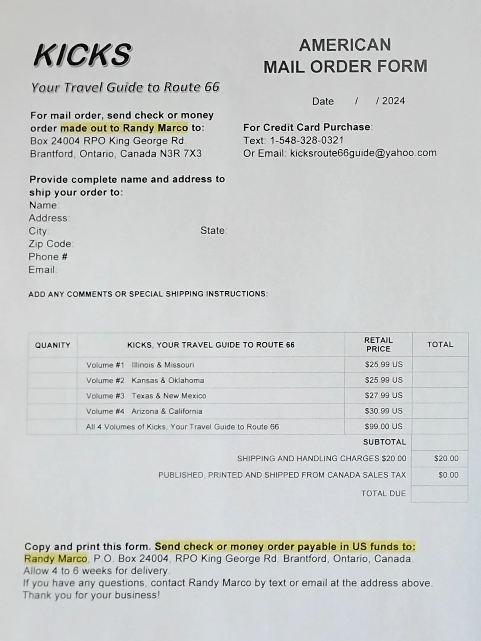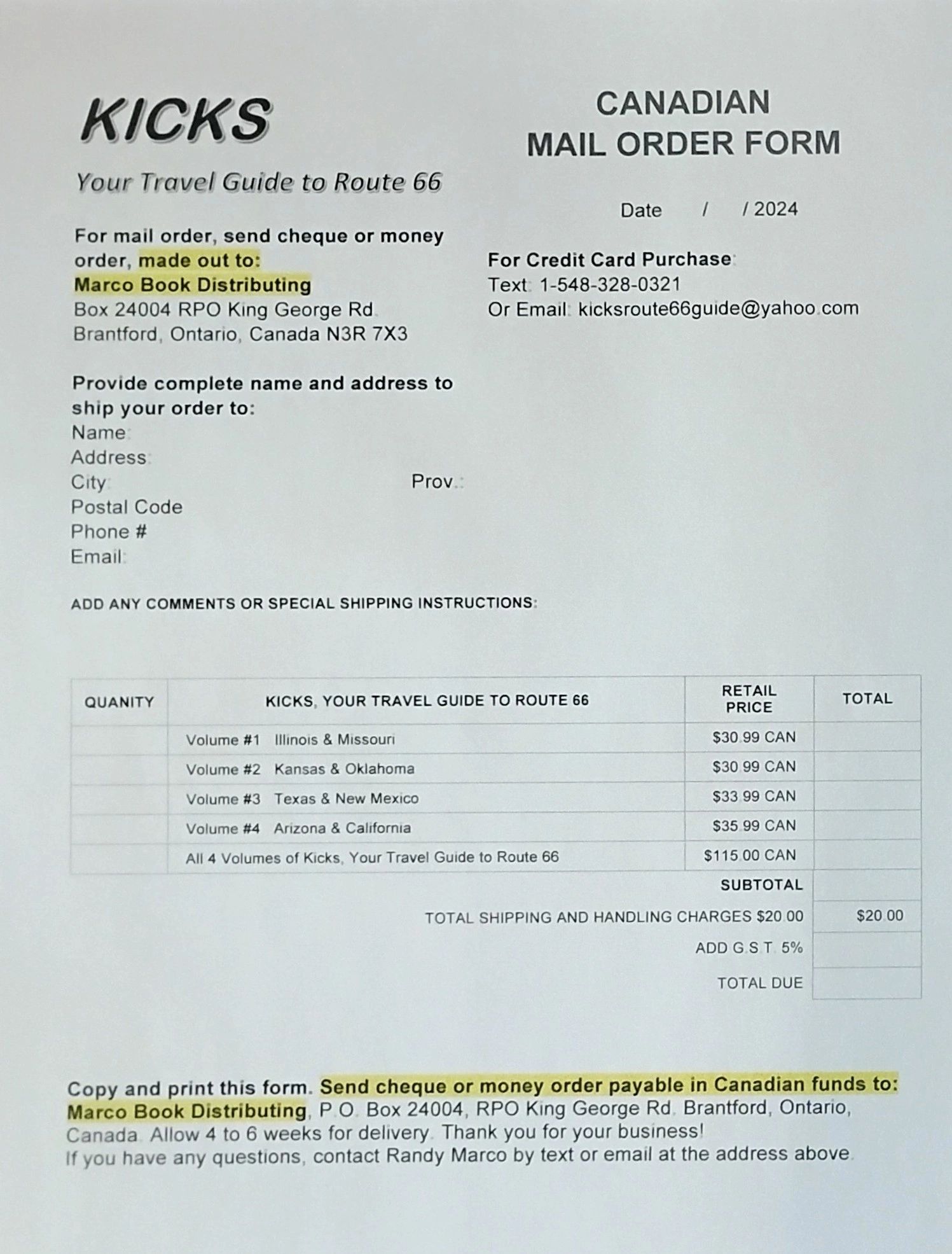 Follow instruction on the form to order your copies of KICKS.